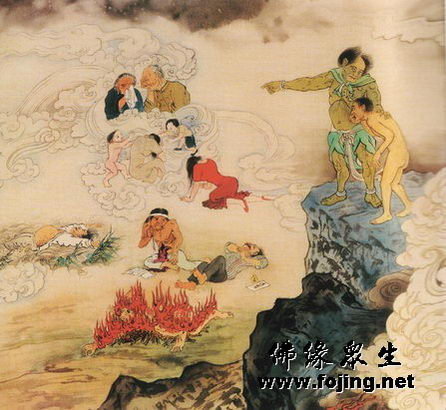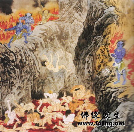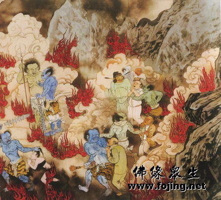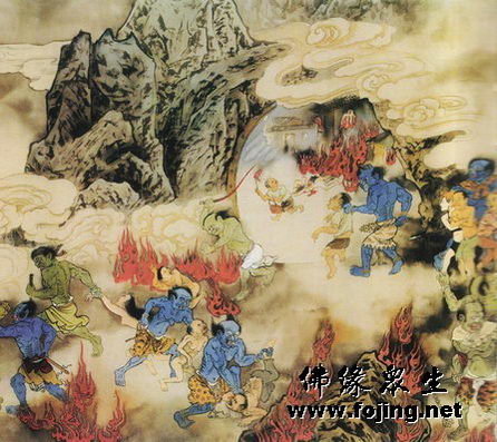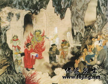 飄過地獄門,巍巍鐵鑄的山岩峭壁,冒着終古不熄的赤焰,一望無際,報到後的幽魂,不分貧富貴賤或男女老少,每人身邊都伴着一位猙獰恐怖的厲鬼,十分恐怖。地獄所有現象,無一不是自己因地造孽之形現,應知生前做盡損人利己、尖酸刻薄、仗勢欺人、性情殘酷,喜怒無常等事,或言語、行爲無所不用其極。哎!極樂、天堂的自在是清淨心與善良心所成就,地獄、畜生之痛苦,當然也是惡習所使然。同是一個心,卻有兩樣情。怨誰呢?正所謂“苦海無邊回頭是岸,地獄無門休咎自取,地獄之陰森恐怖,閻王、判官、夜叉厲鬼等無一不是心境的反映,墜地獄來接受良心的審判,罪業的摧殘。是謂“因果報應絲毫不爽,半點不由人也。”