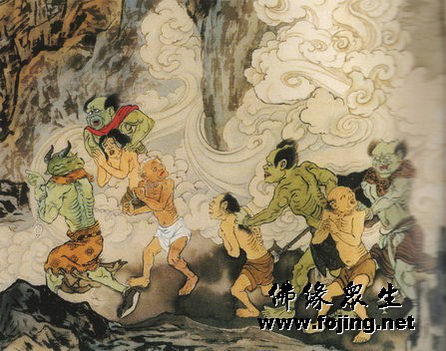 地獄之中,随時可見成千上萬夜叉厲鬼,血口鋼牙,眼入電光,利爪如鋼鐵,鉗制罪犯,押解拖曳至各大小地獄,