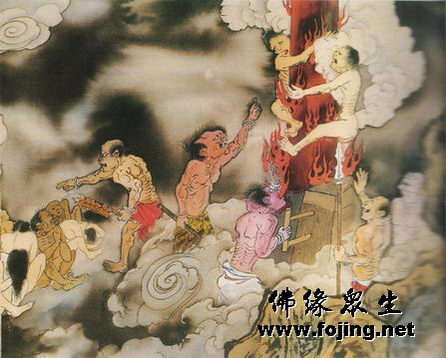 “欲海無邊邪淫起 銅床鐵拄是家邦”當知萬惡淫爲首,倡導罪尤深,誘惑親犯邪淫者,至死習性難改,堕此地獄,身抱火柱,慘受炮烙煎烤,血肉模糊,成灰成燼,随風複生,重撲火柱,周而複始,猶似飛蛾撲火,明知凄慘苦痛,卻情不自禁,至罪笑畢。投胎畜生報,縱得人身,亦受貧賤多疾短命,及眷屬不貞之餘報!