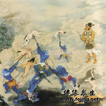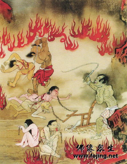 《經律異相》云:[犯邪淫者,男抱銅拄,女卧鐵床。又《正法念經處》云:"喜愛殺生,燒,烤,煎,烹,焖,熏衆生肉,或踐踏小蟲者,死後均堕地獄:受其刑苦,時間極長,非人所能想象。"即便此罪消畢,尚有其他罪業,再堕其他地獄,一一受罪,直到罪業消淨。 殺生,淫亂,是地獄根本重罪,一切殺業都由貪,嗔而起,貪口欲,或嗔怒心而鑄大錯。一切衆生誰願意被殺,誰被殺而不含恨?既含恨,誰不伺機報複?殺剩尚且如此,何況殺人?地獄乃公正廉明之社會,,生前如何處置衆生,死後必然相同對待,毫無變通折扣。