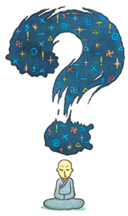 師:這也是《六祖壇經》中的故事。當時惠能已經開悟,和一般人有不同的看法。一般人是從外境的現象著眼,透過主觀形成因人而異的判斷。外在的環境如果沒有主觀的人去觀察它、體驗它,它是毫無意義的。一旦通過人的觀察、體驗和認識,就失去了客觀事實的標準。因為每個人內心的反應都會因時、因地、因他自己內心的情況而有所不同,所以兩個和尚看到幡在動就會有兩種不同的想法。這兩種想法都是錯的,最正確的答案是他們兩人的心在動。
