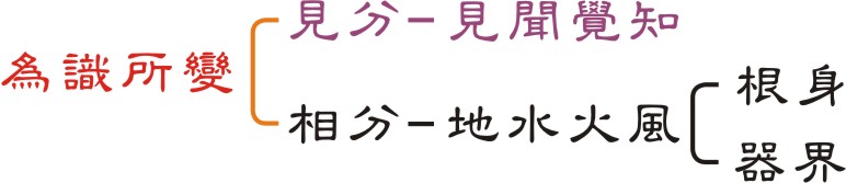 唯識所變—唯識這個識,是說這一切的法,都是這個識所變的,就是阿賴耶識;這個識也是我們所指的妄心,都是我們的妄心所變現的;迷的時候就叫做阿賴耶識,悟的時候就叫做如來藏。迷的時候我們就是用意識,悟的時候我們要轉識成智,我們現在迷在哪裡?我們現在迷在—把這個識,所變的東西當成真的,這樣了解嗎?它所變的東西,我們把它當成真的。比如說,現在有一個變魔術的人,他變出來的任何東西,它不論是一切金銀財寶,不管他變什麼其實都不是真的,因為那個是他變的,所以其實那個不是真的;但是我們今天就是把變出來的這些叫做假相(所變),我們把假相當成真相。但是如果你今天知道,這個東西是它(識)所變的,不管它變出來多真,不管它是多大、多好或是多不好都沒有關係;你只要知道是它(識)變現的,你就不應該執著它(假相),因為這是假相。所以《金剛經》講說「凡所有相,皆是虛妄的」,因為所有相是識所變的,所以它不實在,這一點是要很清楚的,它是識所變的。怎麼變?為什麼我們會變?佛法裡面常講一個名詞,叫做無始無明,無始的意思就是說,不知道從什麼時候開始;還有一個名詞叫做一念無明,什麼叫一念無明?比如說你現在心情好不好?「還可以」。如果一刺激你,那一剎那,你的清凈就消失,那一種狀態叫做一念無明。本來沒有事,刺激你了,一遇到境界,然後你的一念無明就生起了。
